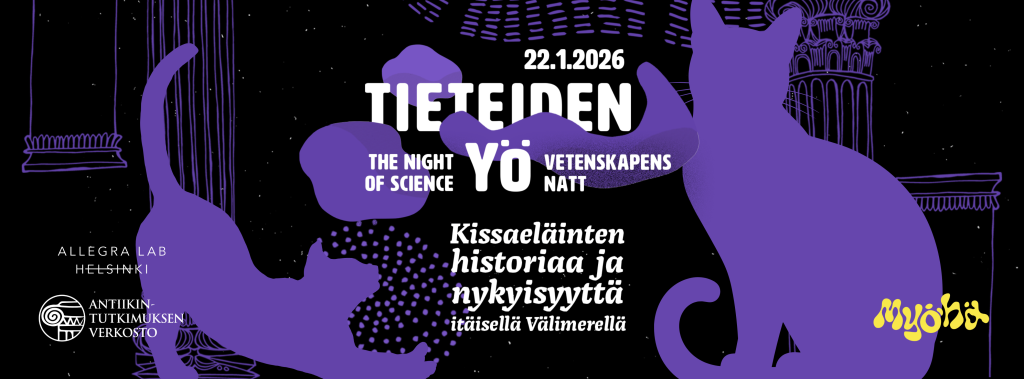Allegra Lab Helsingin ja Antiikintutkimuksen verkoston Tieteiden yön tapahtumassa sukelletaan kissaeläinten elämään itäisellä Välimerellä. Rennossa kahvilabaarissa järjestettävässä tilaisuudessa kuullaan, miten leijonat, temppelien pyhät kissat ja nykypäivän katukissat ovat kulkeneet ihmisen rinnalla antiikista meidän aikoihimme. Mukana myös valokuvanäyttely Kyproksen katukissoista.
